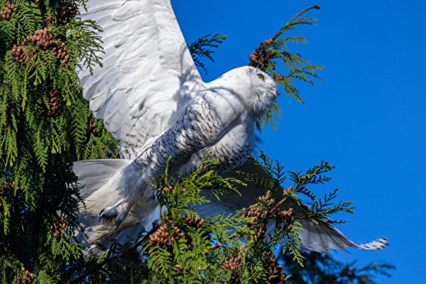 据英文媒体报导,雪白的猫头鹰是北美最大的鸟类之一,原产于北极,在华盛顿州几乎没有看到过。华盛顿州鸟类观察家协会(Washington Bird Watchers)的成员埃里克·詹姆斯(Eric James)很幸运地在11月28日拍下了几张纯白色猫头鹰的照片。