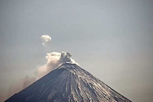 俄罗斯的克柳切夫火山(Klyuchevskoy volcano)在近期开始喷发。除了喷出浓密的火山灰之外,它还吐出一个罕见的巨大烟圈,就像吸烟者口中吐出的那种样式的烟圈。