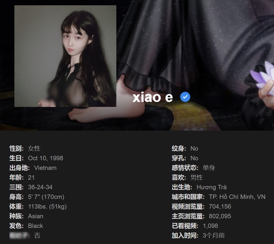 嗨,我是小E!我喜欢给人看*。我的Twitter是@VolvaNguyen,可以在评论下面给我留言,我会看见的。因为私信里太多无意义聊骚和无止境问题,所以我关闭了收件箱。我暂时没有把视频上传到别的平台,其他地方的都是骗子、盗版。