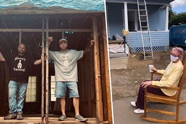 到9月份的第二周,约翰的团队——“格洛丽亚的角斗士们(Gloria’s Gladiators,点我看)”,就把格洛丽亚的旧屋变成了新家,新下水道、新窗户、新天花板、甚至添加了一个新门廊。