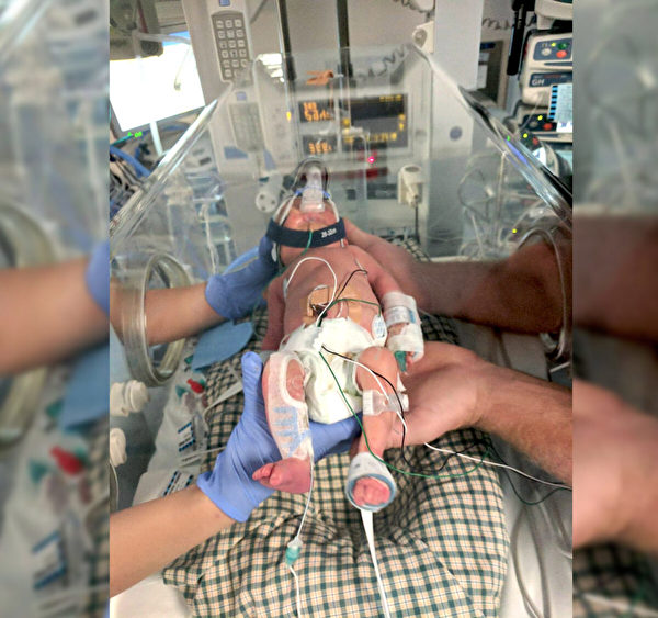 “萨姆森刚出生时全身青紫,救活后被放到新生儿监护室”,蕾妮说,“分娩32个小时后,我才见到我的小宝贝;他的生命体征太不稳定了(不得不一直放在监护室)。”