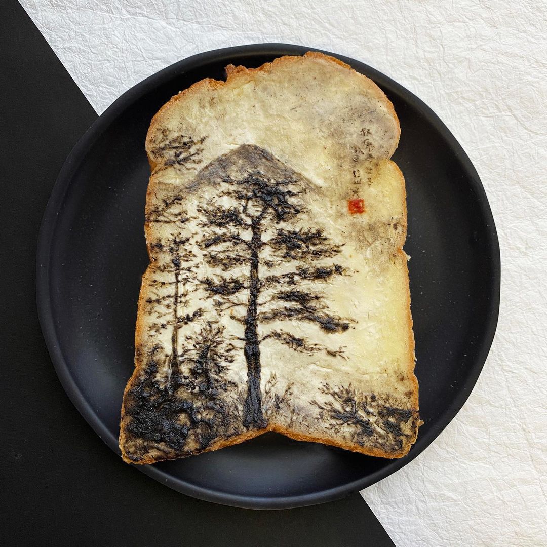 向来喜爱日本文化的她,主要从传统的日本文化中汲取灵感,比如日本浮世绘、山水画作等都在一片片吐司上还原。除此之外,她也挑战日本传统人物、经典杂志封面、漫画、海报等各种图案。
