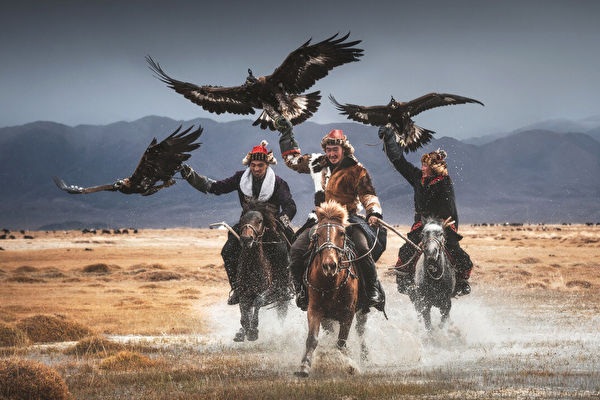 在古代,驯鹰是贵族的象征,而金雕(Golden Eagle)是最常被用作饲养的禽鸟,它们向来难以训练和指挥,因此驯鹰猎人都需要拥有丰富熟练的经验,才能把猛禽训练成狩猎高手。这些老鹰用来捕猎狐狸和野兔,以获得毛皮和食物。