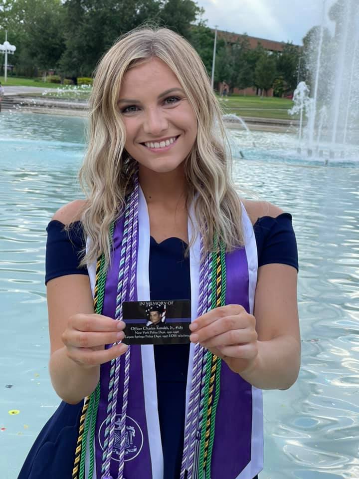 遗憾的是,她的父亲、曾在塔彭斯普林斯警察局(TSPD)就职的警察查尔斯‧康德克(Charles Kondek)无法参加她的毕业典礼,因为他在2014年12月不幸因公殉职。