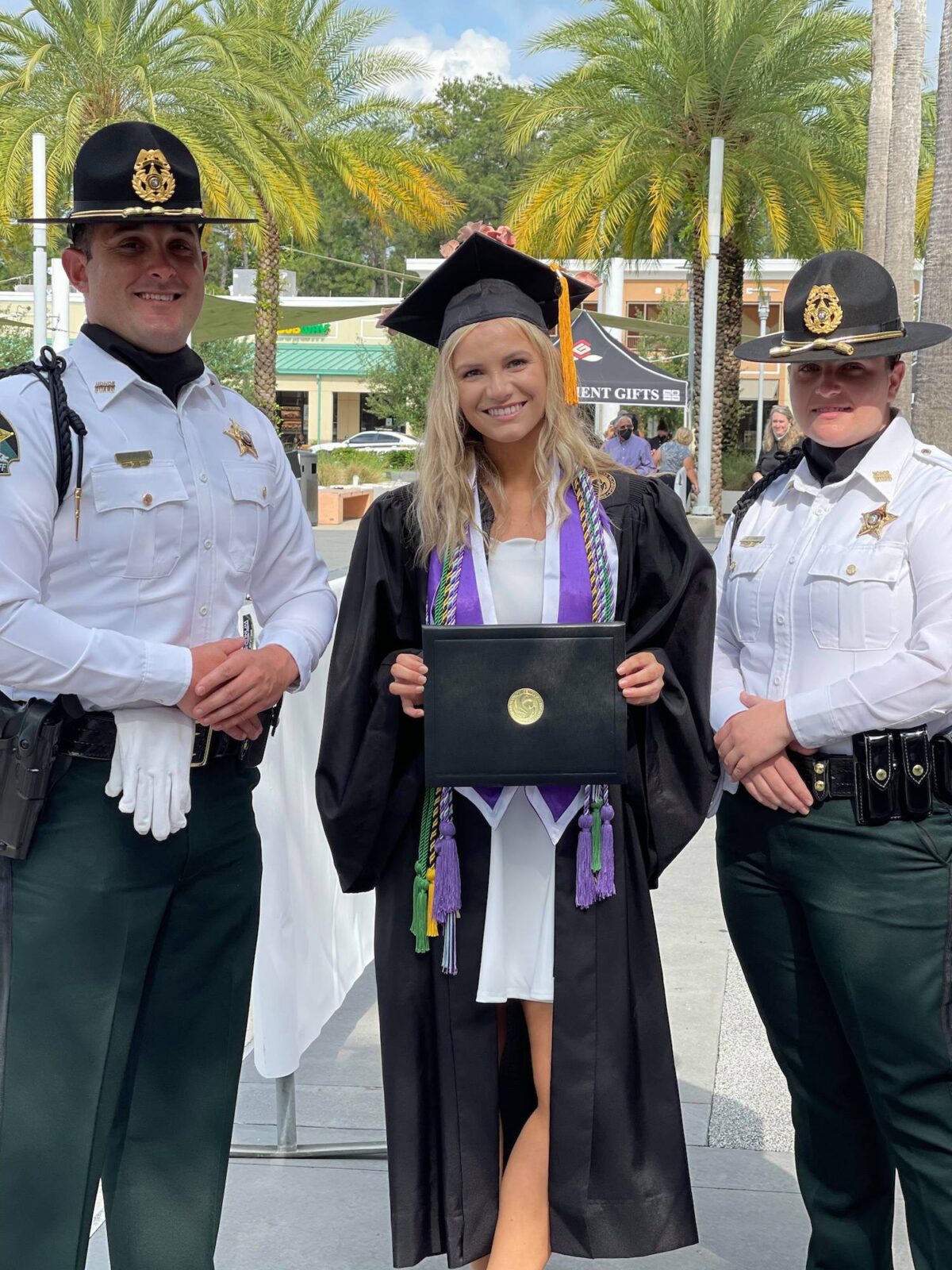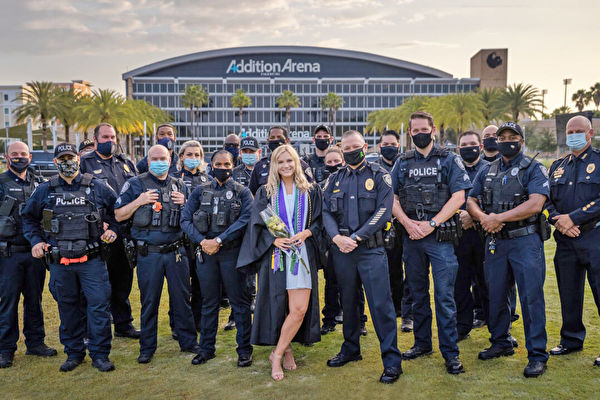 TSPD与中佛罗里达大学警察局(UCFPD)两个部门的警察联合出席了艾琳娜的毕业仪式,并和她一起开心合影。