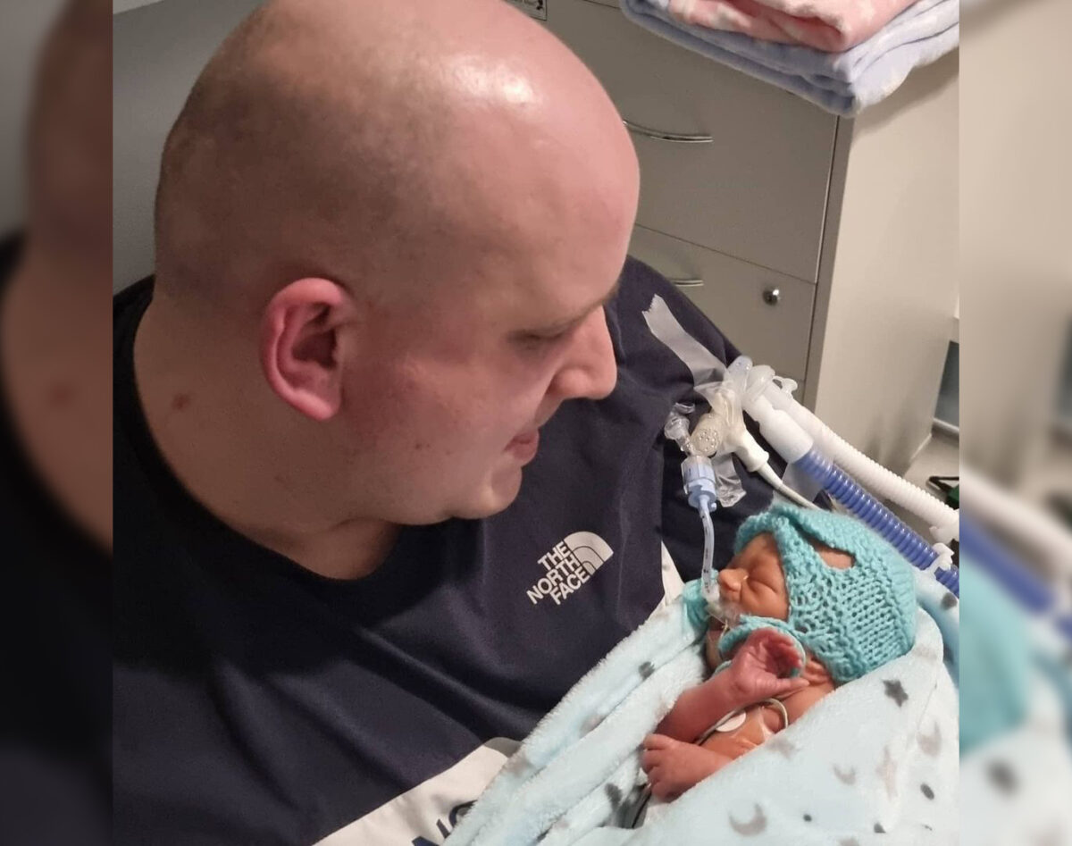 初为父母的劳拉·霍夫(Laura Hough)和克里斯·凯里(Chris Carey)来自英国北部的沃尔顿(Walton)。劳拉怀孕期间曾被警告,女婴尼芙(Neve)可能无法幸存。由于胎盘恶化,尼芙作为双胞胎中较小的一个,她的血液循环不好,在子宫内没有得到足够的营养。