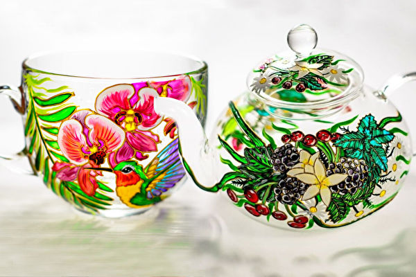 维塔(Vita Panchenko) 是来自乌克兰基辅的玻璃画家,经营一家名为Vitraaze的小型家族企业。她擅长用热固性涂料来彩绘茶壶、杯子、盘子和其它各种玻璃器皿,这些色彩艳丽的精美玻璃艺术品非常令人赏心悦目。