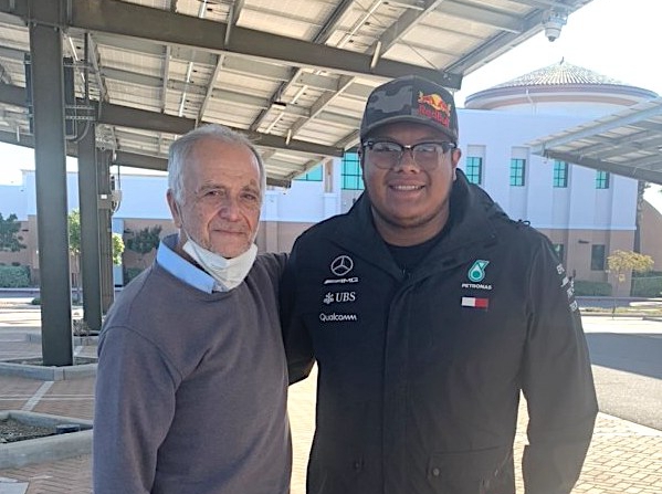 何塞(左)和他之前教过的学生史蒂芬合影。(史蒂芬提供)。