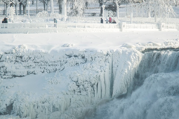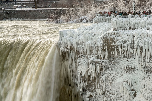 2018年1月3日,尼加拉大瀑布出现冰封奇观。(GEOFF ROBINS/AFP/Getty Images)
