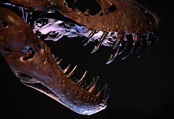 2020年9月15日,在纽约佳士得洛克菲勒中心的新闻发布会上,展示的名为“史丹”(Stan)的霸王龙化石。(ANGELA WEISS/AFP via Getty Images)