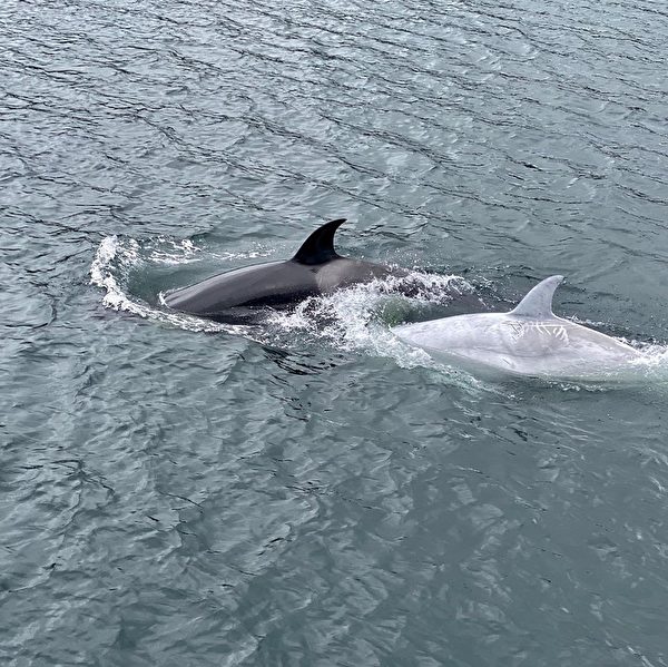 一只罕见的白虎鲸漫游在阿拉斯加海域。(由阿拉斯加海上探险公司和斯蒂芬妮‧海斯提供)