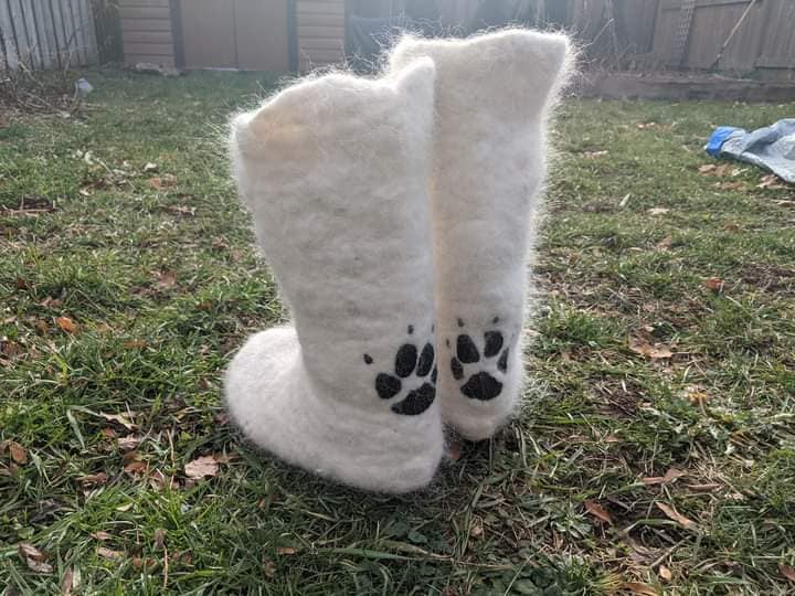 索莱伊对这件作品相当满意,“你想啊,狗狗平时就是靠厚厚的毛来御寒,所以狗毛真的很保暖,用狗毛做的靴子更适合在冬天徒步旅行和露营时穿,穿起来也会很舒服。不过对狗毛过敏的人就不能穿,真的很遗憾。我已经迫不及待地想穿着这双靴子出去散步,一定很暖和!”