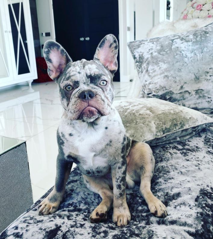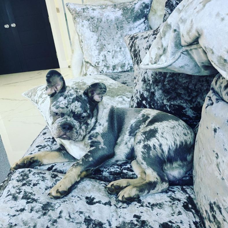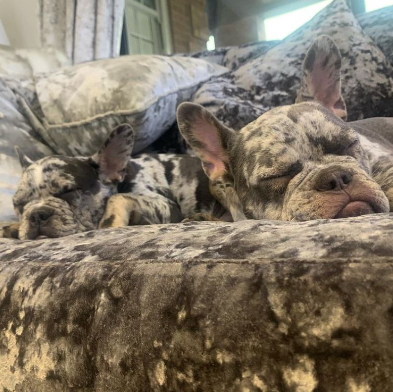 蒂娜家里养了两只梅尔法国斗牛犬,它们的皮毛跟沙发的布料几乎完全融合。(Rocco & Vinnie提供)