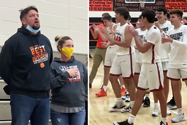 本月初,美国一所高中举办篮球比赛,现场的音响系统突然出现故障,来自俄亥俄州的一位父亲自发地高声唱起国歌,在场的很多人激动地流下眼泪。