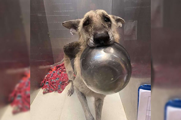 不久前,美国一间动物收容所收到一只满身寄生虫的流浪狗,它虽然极度营养不良加上满身病痛,但仍然信任人类,每次看到有人经过,它都会叼着饭碗不放,但它真正的想法却不是想要吃饭,背后的原因令人既心酸又感动。