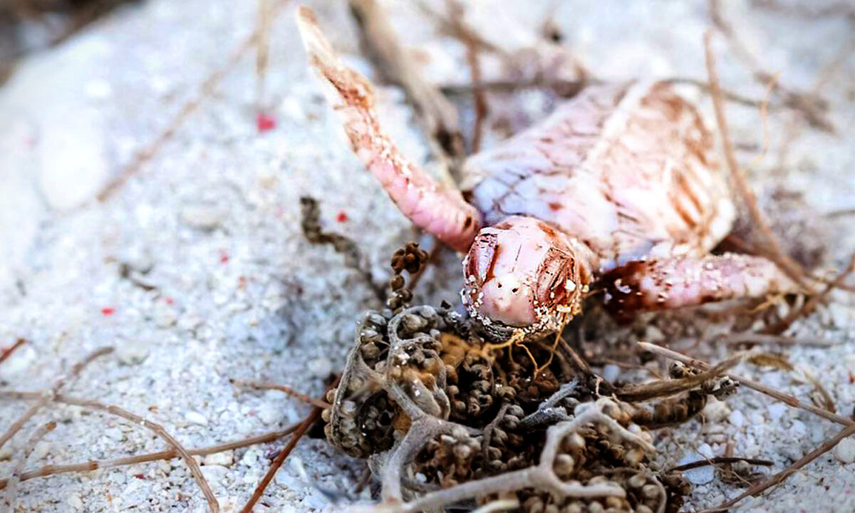 通体呈玫瑰粉 澳洲海滩现罕见白化小海龟