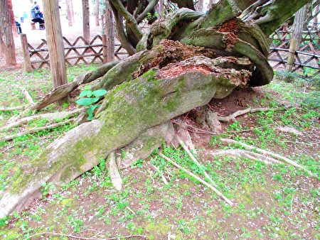 六百岁紫藤木根干龟裂、盘缠曲回。(可容/媒体)