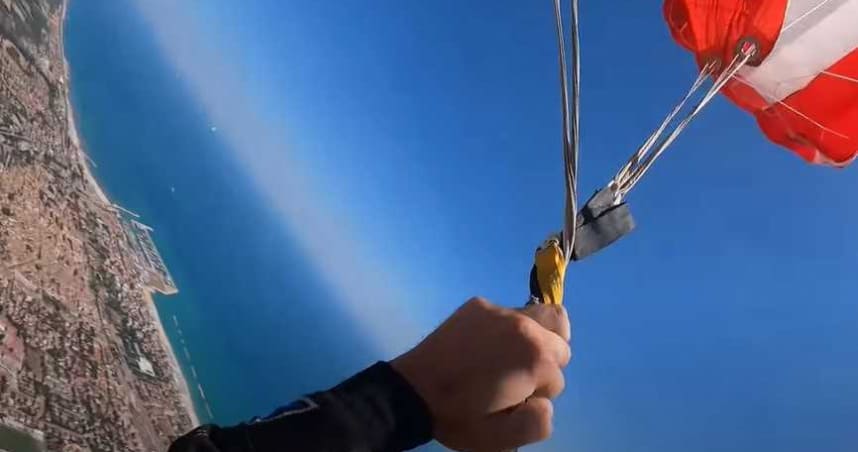 一名30岁男子日前和女友在义大利法诺(Fano)跳伞,没想到他从14000英尺(约4300公尺)跳下后,打开降落伞竟发现绳索全部纠缠在一起,他开始在空中不停打转,所幸他临危不乱,赶紧将绳索解开,才化解危机。