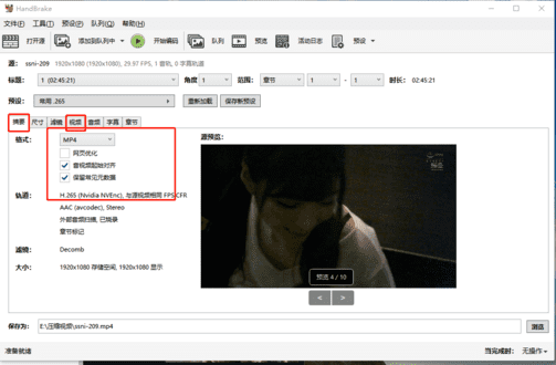因为我的独显是N卡,所以设置这个H.265(Nvidia NVEnc)就行,这里说明一下,我试过.264的转码后发现视频效果会有噪点之类,而.265和原视频效果基本没有区别了