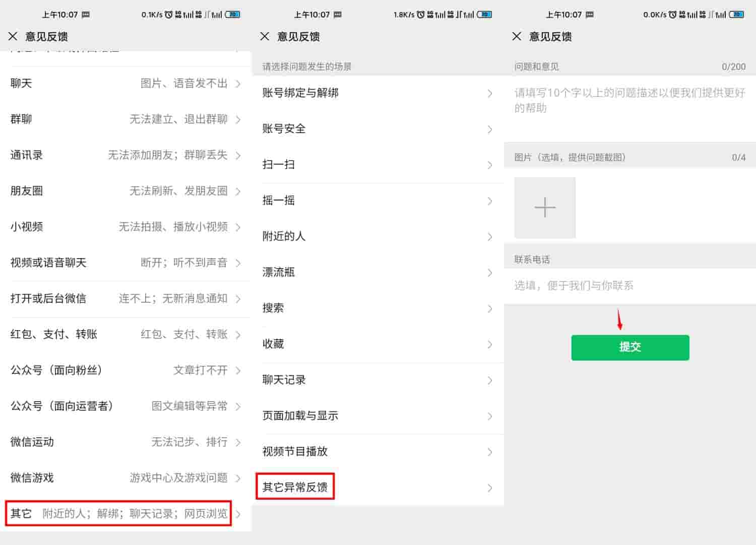 微信公众号【微信团队】--菜单栏意见反馈--点推送的“此处”--往下拉到底其他选项--往下拉“其他异常信息反馈”进入在意见栏输入“我的账号莫名其妙被别人恶意的投诉举报,严重的干扰正常的工作和交流。恳求严厉查处此人为什么投诉举报我“诸如此类的语句,随后点开提交就可以了