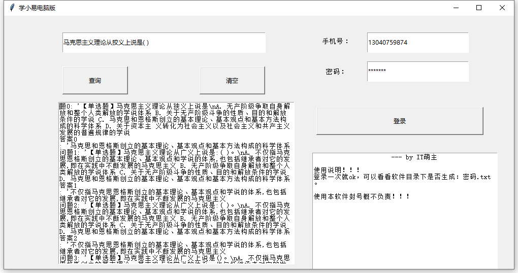 而且我用搜索引擎搜索了下“学小易”pc电脑版,出来的全跟学小易无关,不是让你安装一个安卓模拟器,就是下载的其他程序,真的让人恼火。其实“学小易”是没有电脑版的。如果有,在官网上早就提供下载了。不过只要有价值的东西存在的app,就会有大神帮你做界面版本。像现在给出的这款电脑版的“学小易”其实就是为学小易的数据安装了一个外壳。其实有价值的还是“学小易”后台的数据。对于用户而言,其实我们更关注的是最后的结果是否对我们有价值。链接在末尾,欢迎下载!