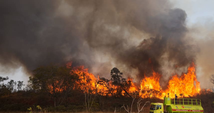 巴西圣保罗州佛朗哥达侯夏市诸盖里(Juquery)州立公园于22日发生大火,火焰的延烧速度之快,很快的就烧毁园区内一半的面积,目前为止当地消防人员还在极力抢救中......